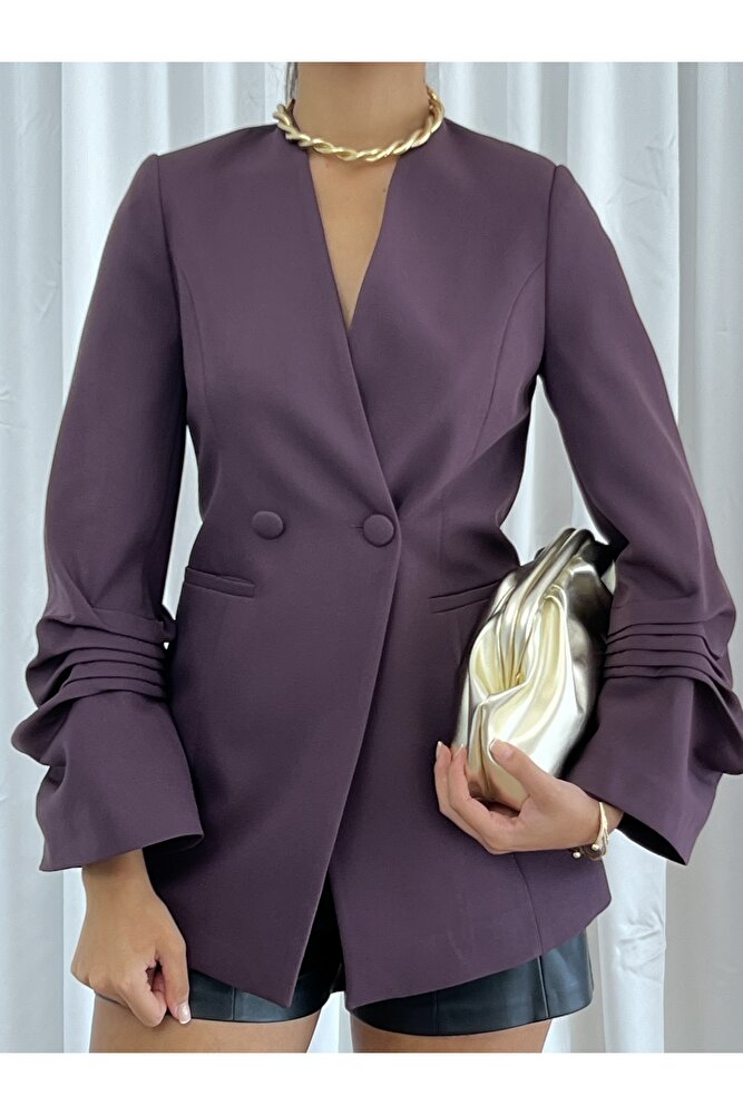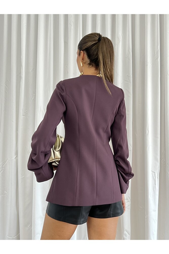 Kolu Büzgü Detaylı Astarlı Kadın Orta Boy Günlük Özel Gün Blazer Ceket