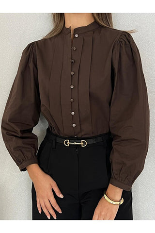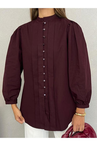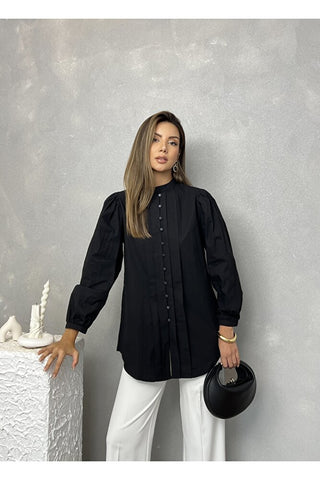 Önü Pileli Balon Kol Günlük Şık Gece Kadın Gömlek
