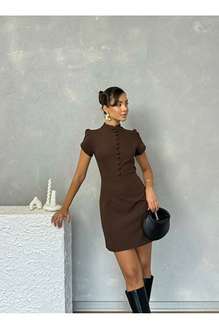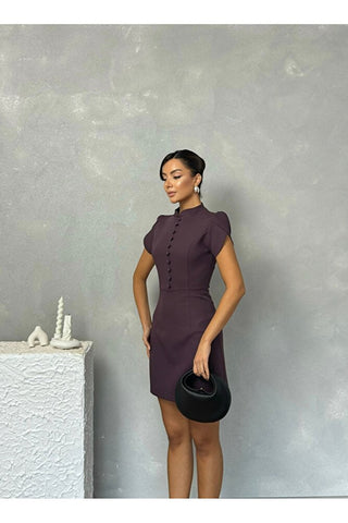 Belden Oturmalı Düğme Detaylı Puff Omuz Mini Özel Gün Günlük Kadın Amelia Elbise