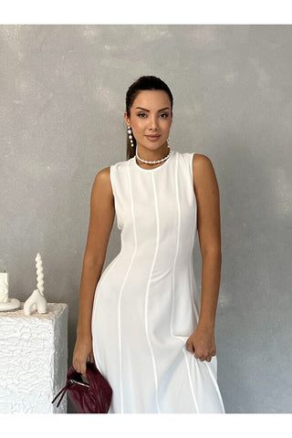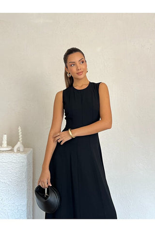 Biyeli Uzun Belden Aşağı Çan İnen Kolsuz Şık Günlük Kadın Elbise